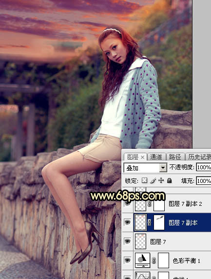 11、按Ctrl + J 把当前图层复制一层,混合模式改为“叠加”,添加图层蒙版,用黑色画笔擦掉一些过于明显的地方。