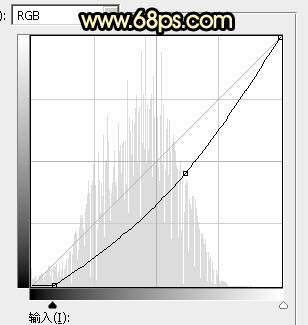 15、创建曲线调整图层,把RGB通道调暗一点,如图24,确定后把蒙版填充黑色,用白色画笔把左侧底部区域擦出来,效果如图25。这一步给左侧部分增加暗部。