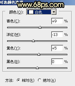 2、创建可选颜色调整图层,对黄、绿、白、中性色进行调整,参数设置如图3 - 6,效果如图7。这一步主要把图片中的黄色转为橙红色。