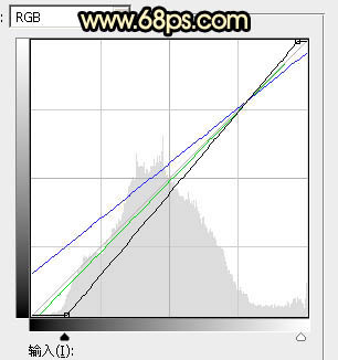 8、创建曲线调整图层,对RGB,绿色通道进行调整,参数设置如图16,确定后同上的方法创建剪切蒙版。