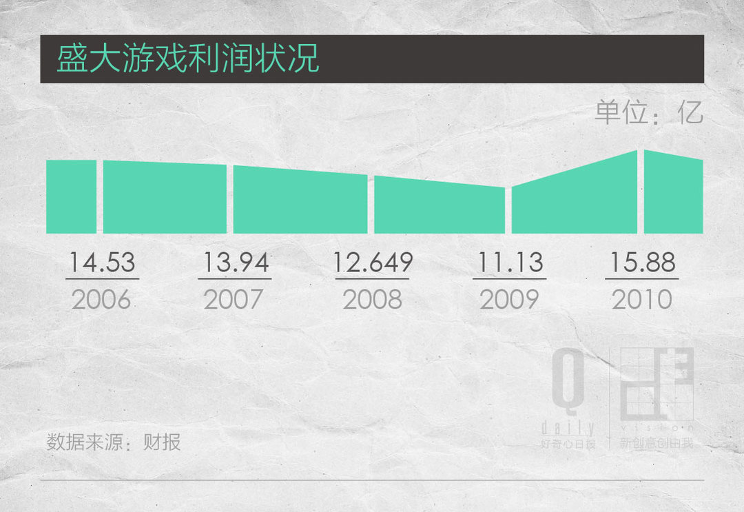 另一方面,盛大的游戏业务也在萎缩。就盛大关于“文学和游戏的结合”的美好愿景来说,盛大文学并没有像预设中那样全身心地助力盛大游戏,不断巩固盛大游戏地地位。盛大游戏也在与腾讯、网易的竞争中略显乏力,地位日渐衰落。
