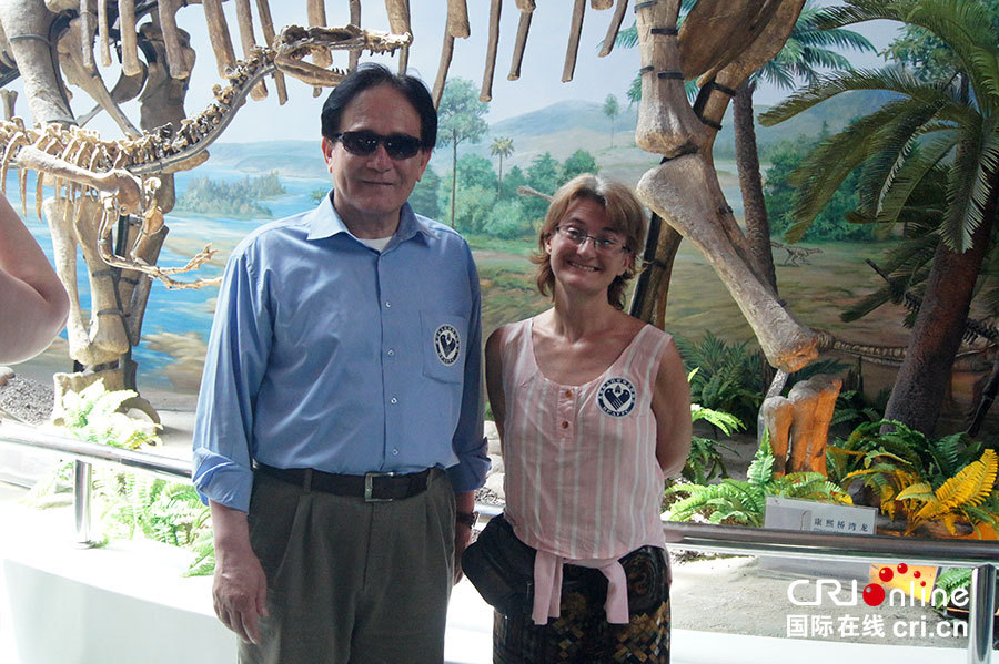 外国友人在延庆地质博物馆内合影留念。(摄影 李鷐)