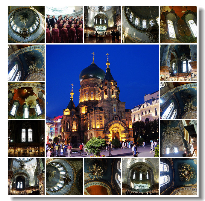 索菲亚教堂:哈尔滨是一个有着多个教堂建筑特色的城市,现存的教堂建筑中,索菲亚教堂是最大气、最精美、最有代表性的教堂建筑。巨大的洋葱头形的穹顶,闪着金晖的十字架,层层叠叠的蓬帐顶,一面面的高侧窗,一个个的大柱墩,墨绿的顶、金色的架与清水红砖相映,无不在传递着它高贵典雅的恢弘气质。