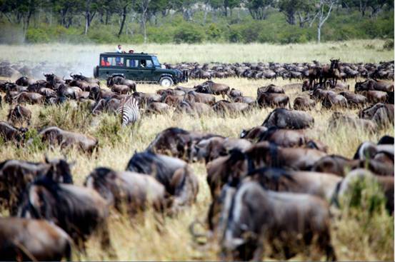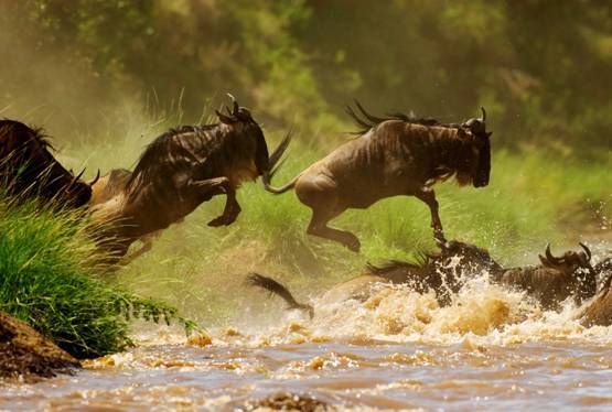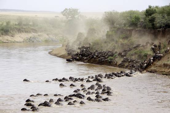 每年的四月,肯尼亚角马一年一度的大迁徙拉开序幕,数百万角马雄纠纠气昂昂地横跨马拉河,找寻新牧地,场面异常壮观。
