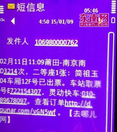 “第一个跳出来的就是‘去哪儿网’,我就直接进入在那里面买车票了。”陈小姐说,她按照网站的提示,刚订完车票,就有人打电话说自己的两张车票需要激活后才能使用,叫她输入验证码。“我当时也没有多想,就照做了,谁知道才一会儿时间,跟我银行卡绑定的手机就收到短信,显示我银行卡内的钱被取走了,总共有8989元。”陈小姐立刻向莆田荔城区镇海派出所报警,同时也前往银行咨询,帮忙了解钱的去向,但目前钱还是没有被追回。