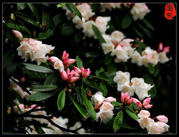 已经盛开的纯白色杜鹃花,不是很好拍,这一点渝帆没撑握好用光。
