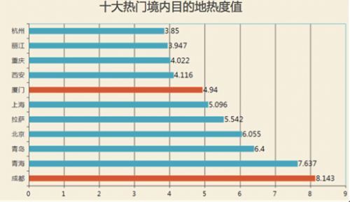 2015 年上半年增长热度最快的自由行目的地是成都,蚂蜂窝热度值为8.14。难怪发布“世界那么大,我想去看看”的顾老师把她出行的第一站也放在了成都。另外,2014 年上半年增长热度最快的厦门仅位列第 7,热度值为4.94。这说明厦门在自由行用户心中已成为常规的旅游目的地。