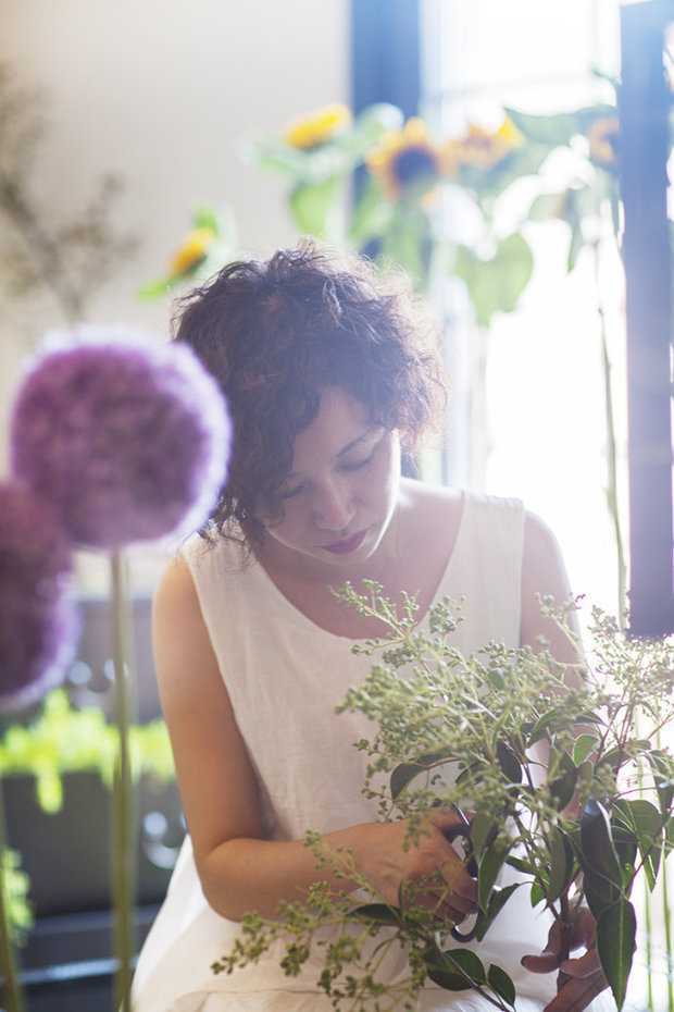 而当她在做花时,她的身上也散发着光芒,那是一种与刚才眼神中自信的光芒又有所不同的艺术气质。