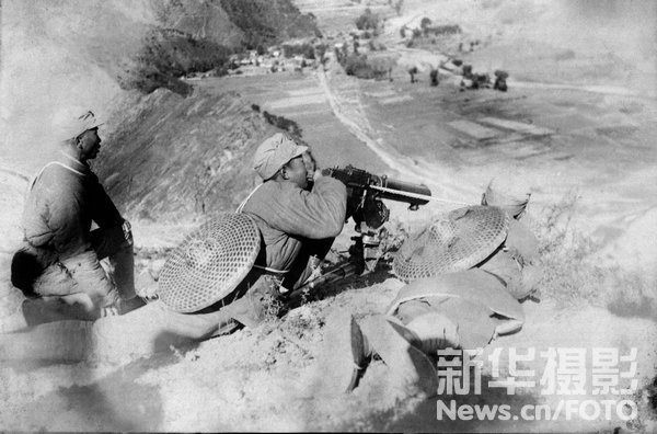 1937年9月,平型关大战中的我军机枪阵地。苏静/摄