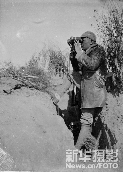 1936年,在前线瞭望的军人。方大曾/摄
