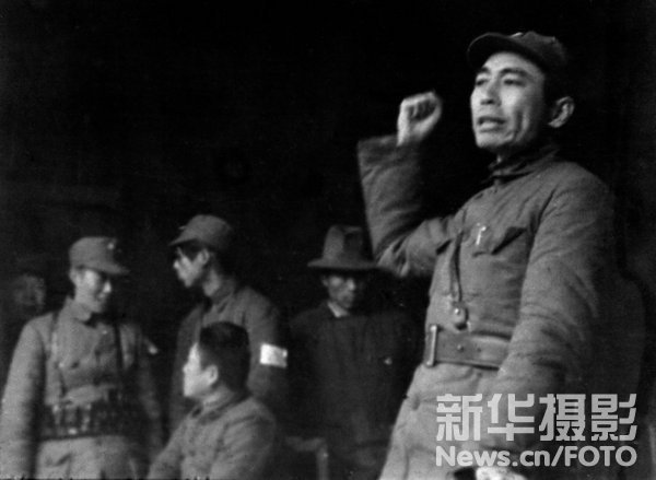 1939年2月,周恩来在新四军军部作报告。叶挺/摄