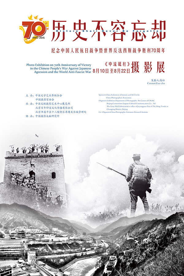 据悉,本次展览将举办三场。其中,此次在居庸关举办的影展将展至8月22日;8月26日至9月1日,《中流砥柱》摄影展还将在卢沟桥展出。8月31日上午10时,最为完整的《历史不容忘却--纪念中国抗日战争暨世界反法西斯战争胜利70周年摄影展》将在中华世纪坛开幕。届时,展览将包含《中流砥柱》、《再见、延安》、《世界反法西斯战争》、《国家记忆》、《跨越国境的爱》、《为历史作证》六个版块,全方位、多角度展示中华民族参与世界反法西斯战争的伟大历程。