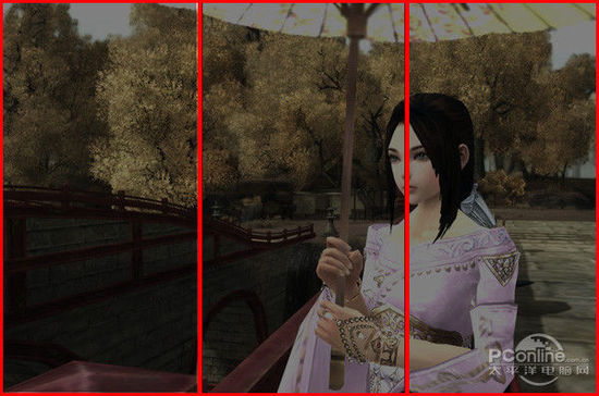 拍景色有点无聊?那我们尝试着来拍拍人物。人物摄影构图也可以沿用三分法则,横构图可以用三分,竖构图同样可以用三分。GTA V里三个大汉玩自拍实在没啥亮点,我们来看看《剑侠情缘三》里拍妹子,同样可以实现三分法取景。