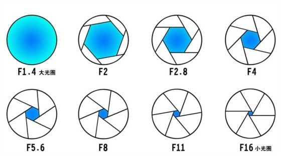 光圈数值与光圈大小成反比,f1.4光圈的瞬间进光量要比f1.8的大,就可以获得更多的光线,拍摄出来的照片也更有质感。如果不清楚光圈数值的意义,我们可以参考上图。